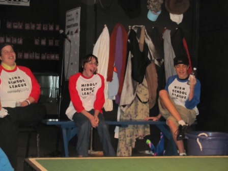 Our 8th grader, Chris, has been attending a Saturday workshop at ComedySportz over the past several weeks. The workshop culminated in a performance this past Saturday. He was the only middle-schooler in a class of high-schoolers, many of whom had taken the workshop at least once before. But Chris held his own and had a blast.