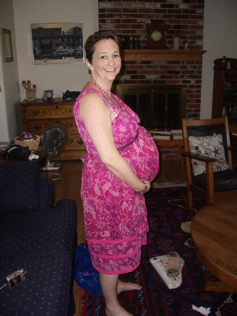 | A few days before the birth, in my favorite maternity dress |