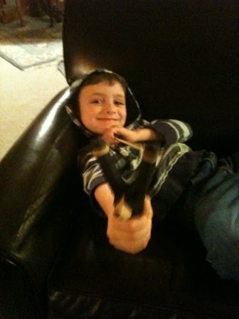 | Kieran with the slingshot he bought at Flamingo Jim’s… |