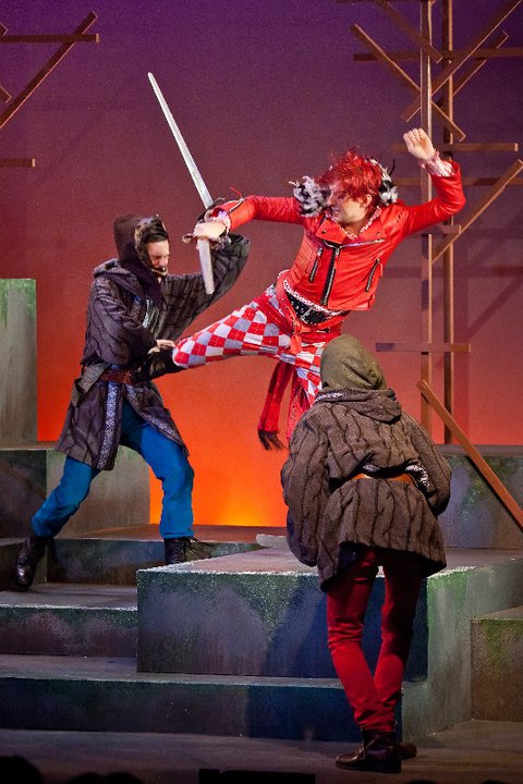This evening I took Kieran and Nick to see “Robin Hood” at NWCT while Mike took Chris to see “Urinetown” at Wilson High School (which they both enjoyed very much). NWCT’s world premiere of this new version of Robin Hood was comic and updated. Kieran pronounced it to be one of the best plays he’s seen in a long time. I enjoyed it, but I definitely preferred “Annie.” I think he liked all the swordplay and archery! Nick’s favorite character was Will Scarlet, played by my favorite, John Ellingson (who is in most NWCT plays), because he wore Nick’s favorite color.