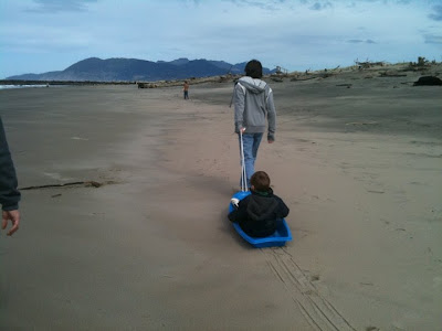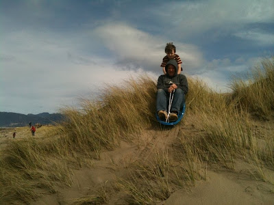 We took the sled out to the beach for some dune sliding: