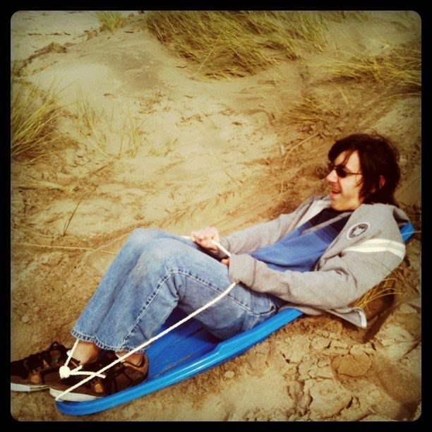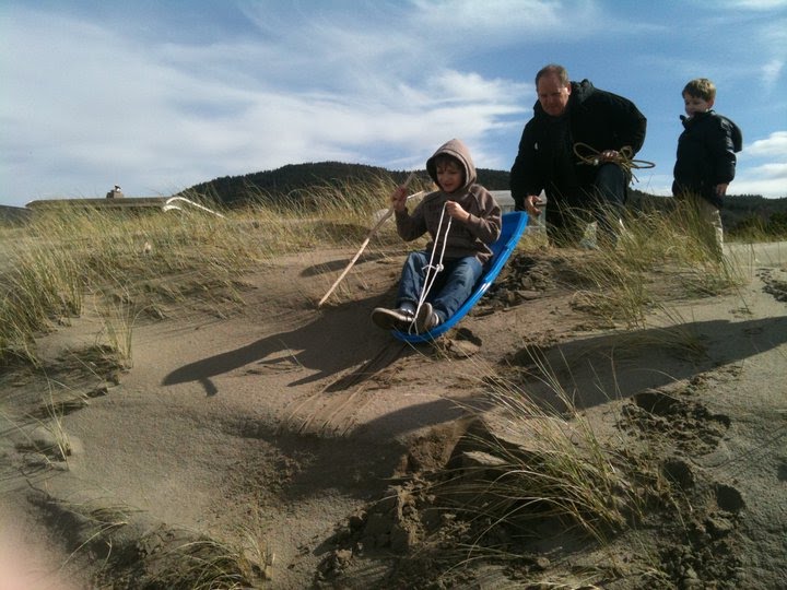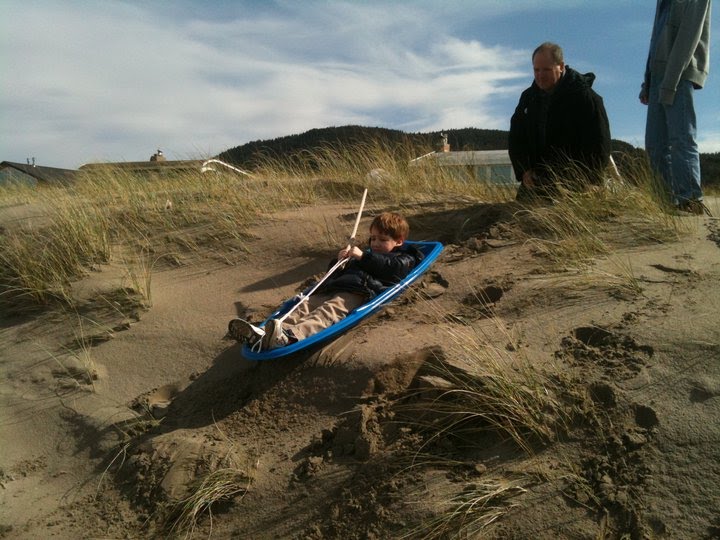 We took the sled out to the beach for some dune sliding: