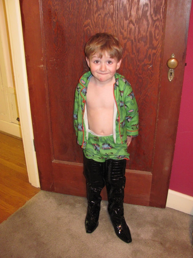 Nick trying on my patent-leather boots (he’s definitely a shoe man