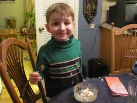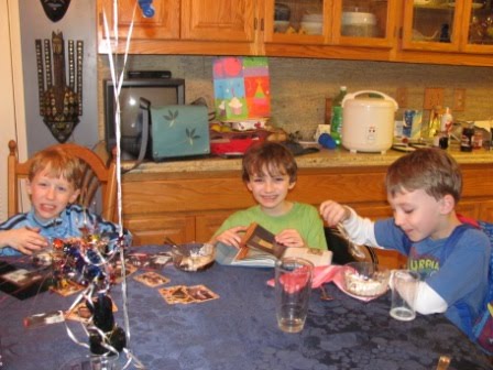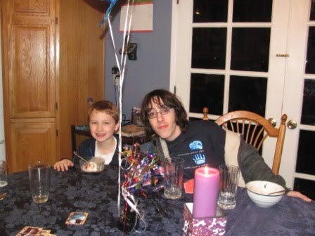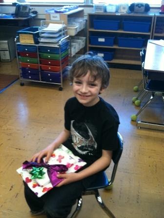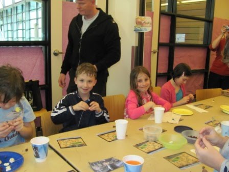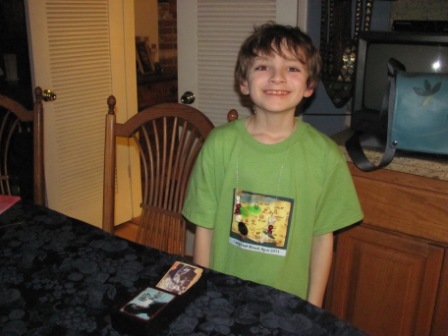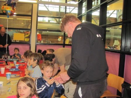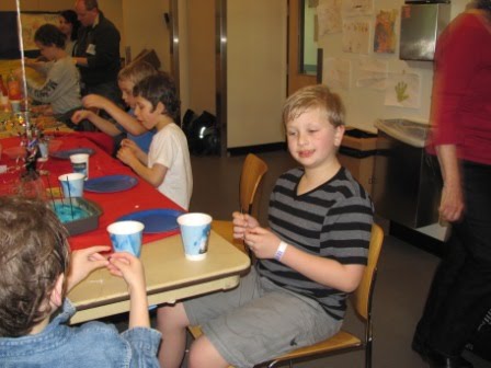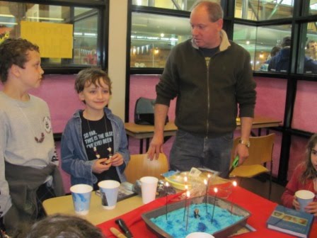 As regularly blog readers know, our family loves birthdays and makes the most of them. Last Saturday was Kieran’s eighth birthday. The festivities began on Friday. After I had done my singing with Kieran’s second grade class, we celebrated his birthday by having Kieran present two books he had selected to give to the classroom (Hootby Carl Hiaasen and a book about reptiles).