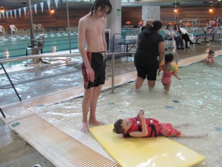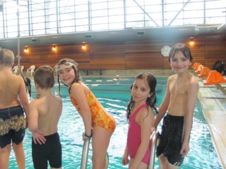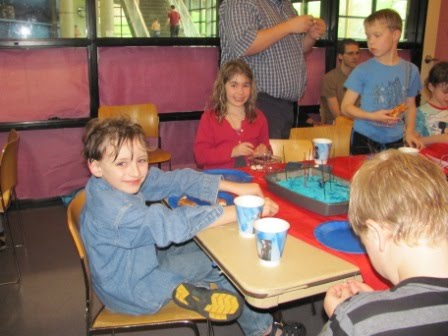 On Saturday we celebrated with a bunch of mostly second graders at a “Percy Jackson” swimming party. Thirteen boys (including Chris) and three brave girls: