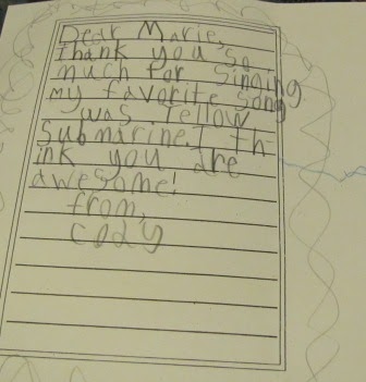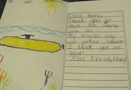 Last Friday was my last day to sing with Kieran’s second grade class. I cannot begin to explain how much I have enjoyed this very small volunteer service, and I’m already missing it. Kieran’s wonderful teacher, Mrs. Schaeffer, invited the parents and interim principal on the last day. Here we are singing Yellow Submarine (another mom brought in her trumpet to play along)–you can clearly hear Mike and Kieran!: