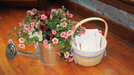 | The beautiful flowers and basket of cards |