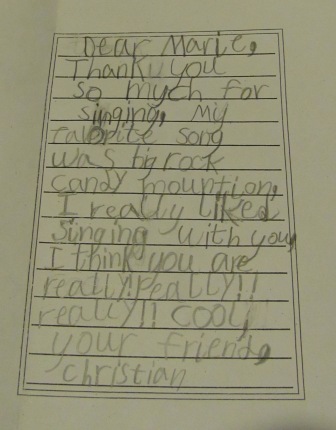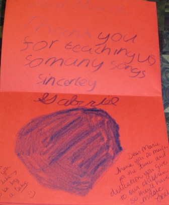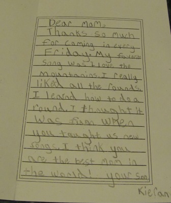 I will really miss these kids over the summer…so much so that I’m planning to have some park singing dates…and I am going to offer to do two classes next year–Kieran’s new third grade class (if the teacher wants me, of course) and then I’ve offered to return to Mrs. Schaeffer’s class for her final year of teaching before she retires. It’s been just as rewarding for me as it has been for the kids!