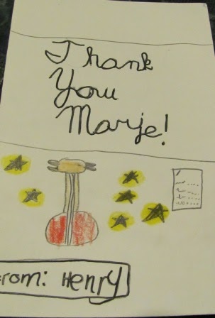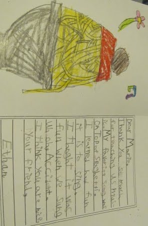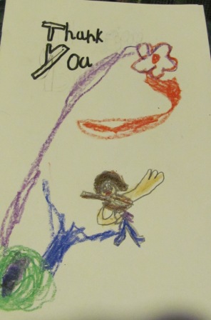 Then they gave me a wonderful flower arrangement and a basket of wonderful cards and letters. I will treasure these notes–they are absolutely precious. I especially enjoyed seeing the way the children see me!