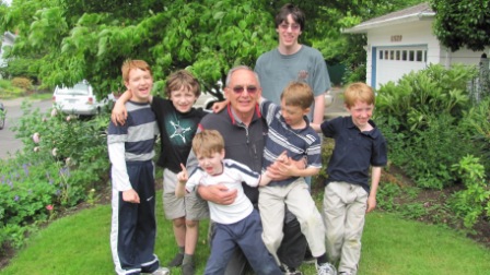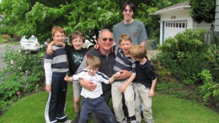 Just finished another busy Father’s Day weekend. Last night my sister and family came down to Portland, and we went to Mom & Dad’s house for stir fry (and pizza for the kids). Here’s my dad–under the blanket with Nick–as the cousins are arriving.