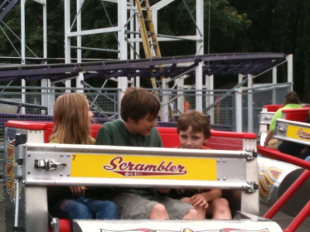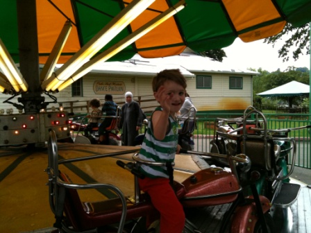 Both Kieran and Nick showed how much they’d grown up in the last year. Nick went on the Tilt-a-Whirl and LOVED it (it was my favorite ride as a kid) and Kieran was my buddy on the most thrilling ride in the park, the Scream’N Eagle (WHICH I LOVE!):