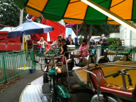 Tuesday afternoon we went to Oaks Park for their 2/1 special–two ride tickets for the price of one. The unfortunate thing about Oaks Park is that most of their rides spin…not good for queasy-tendency people such as Mike and Kath. They enjoyed the big roller coaster while the rest of us spun around.