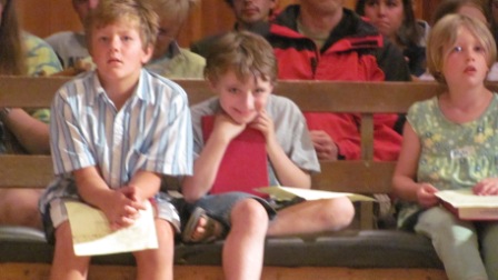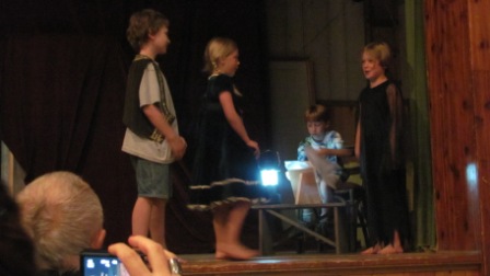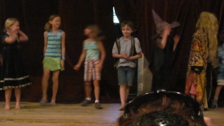 Kieran’s big project of the week was to stage a play, “Hansel & Gretel Abridged.” He brought copies of the script along, casted the play, and was the codirector, coproducer, and lead actor (Hansel). On Friday the kids presented the play, and they did an outstanding job, especially given the fact that they had very little adult supervision. They played to quite a large crowd, too, thanks to the skillful promotions by Ari and Myla.