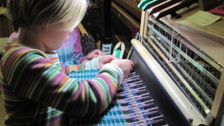 | Shelia’s daughters Myla and Ari making their own weaving |