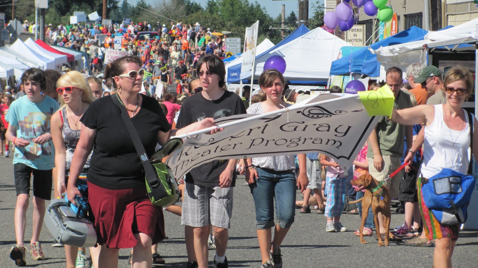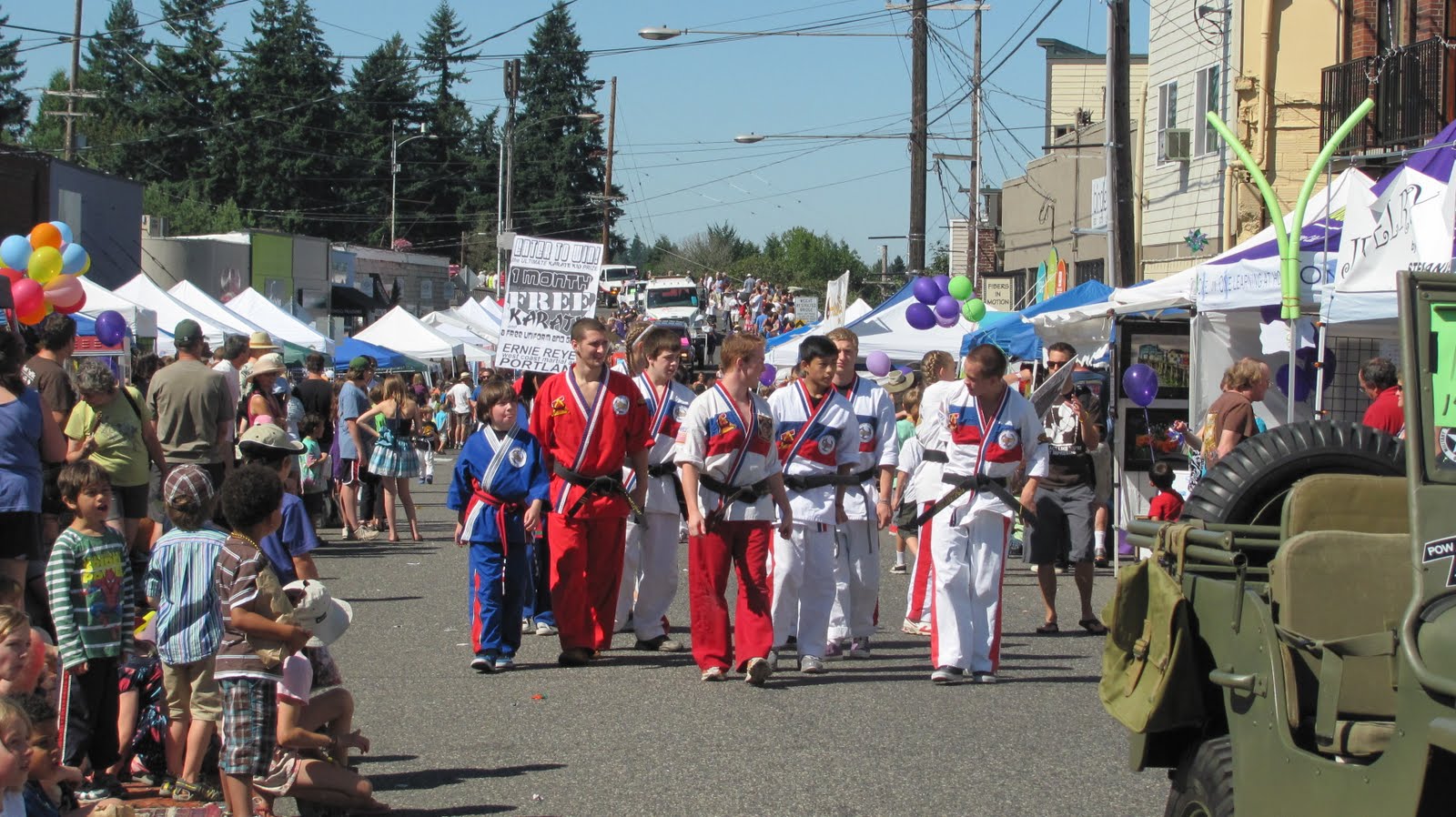 Last weekend was our little small-town-within-a-big-city’s annual festival, Multnomah Days. We were planning to leave for the beach on Friday and skip Multnomah Days this year, but that was before Kieran’s martial arts school started recruiting for kids to march in the parade. Kieran begged us to stay for the parade–his first ever. So we caved. Chris also had the opportunity to march in the parade with his middle school drama group (and do the “Thriller” dance). We love the parade and the event anyway, so we all made the most of it.