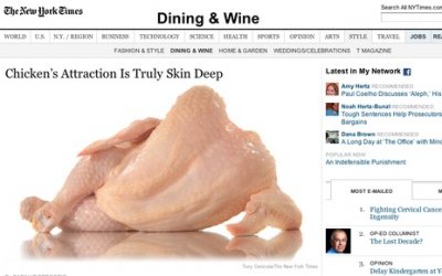 As this writer pointed out, PETA should thank the Times. Who would want to eat a chicken after viewing that photo? It’s much more successful (and relevant) than porn.