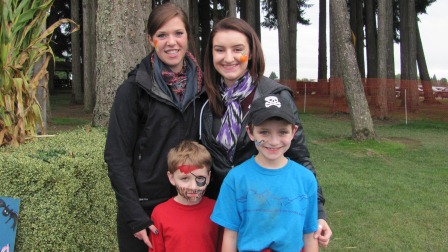 | Having lunch after finding the pumpkins–Kieran with his teacher and friend Natalie (2009) |