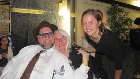 One of the features of the show is a walk-on, which is offered to anyone in the audience for a $50 donation (Jane: A Theater Company is a nonprofit corporation). Nadine and I decided to put some money together (and my parents pitched in some too) to buy the walk-on for our friend, Jeanne. Initially we weren’t sure if she’d get into it, but she seemed to LOVE her time in the spotlight–and she took the opportunity to flirt wildly with Dr. Frankenstein:
