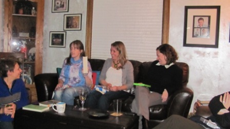 We’ve been meeting for over a year now, and we’ve lost a few members along the way who were not able to make the commitment because of other things in their lives. We recently added three new members. Last night we had all of us here for the first time, perhaps ever, plus our three new members! We’re all moms (of at least two kids), and one of us is a grandma. Two are married to Brits and one is a Brit. We are nursing professors, lawyers, and marketing or publications professionals.
