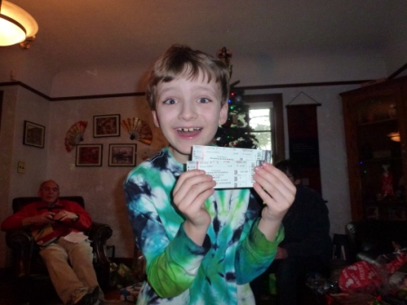 | Kieran with his Wicked tickets (can you tell he’s happy?) |