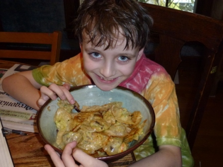 I always have such great ambitions before the Christmas season…someday I will make all my own gifts. But for now a craft project or two per year will have to suffice. This year, I covered candles with paper, ribbon, and shells, with a “Peace on Earth” message. Kieran and Nick saw what I was doing and wanted to get in on the act, so they each made a candle as well. Nick’s, which went to “the cousins” (Nadine and family) said, “Hi Partner,” “Feliz Navidad,” “There’s a Snake in My Boot,” and “Peace No Earth.” I told him that he’d written “No” instead of “On,” and asked if he wanted to change it, but he thought it was hilarious and left it.