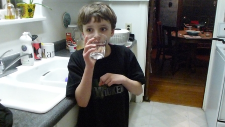 Here’s the latest adventure of Kieran. The other day he began a competition with a classmate to see who could best tolerate spicy foods. It began when he took sushi for lunch and his friend, Ceci asked for the wasabi. From there it developed into some kind of a dare. Kieran came home and developed a concoction of jalapeno peppers, wasabi peas, and tabasco sauce.