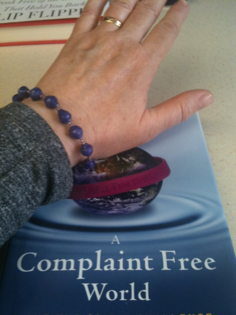 Will Bowen is a minister at Christ Church Unity in Kansas City, Missouri. He started the complaint-free movement in his church by giving away purple bracelets (shown wrapped around the globe, on the book cover) and developing a technique to reduce or eliminate complaining. The idea is that you wear the bracelet on one wrist, and when you complain, criticize, or gossip, you switch the bracelet to the other wrist. The goal is to try to go 21 consecutive days without complaining, criticizing, or gossipping out loud. (It doesn’t count if it happens only in your head.) Bowen says that most people have to move their bracelet 15 to 20 times in the first few days, and soon it gets easier and easier. If you complain after 10 complaint-free days, you start all over again to aim for the 21 consecutive days.