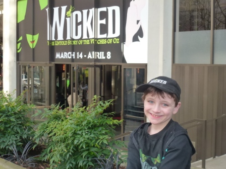 Then last evening, Kieran and I went to “Wicked.” He’s been waiting for that night for nearly four years (since he learned of the play’s existence)…and especially since we gave him the tickets for Christmas. He absolutely LOVED the show–he kept leaning over and asking me to pinch him!