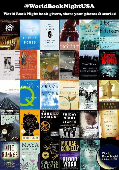 World Book Night began in the UK in 2011 and spread to the U.S. this year. It’s an annual celebration of reading and books. Authors, publishers, distributors, independent booksellers, UPS, printers, and binders collaborate to print and distribute the books, for free, to reluctant readers across the country. This year 25,000 givers distributed 20 copies of a book out of a selection of 30 books (some pictured at left). (We got to make three choices, and if we were lucky, we received one of the books we requested.)Everyone who received a book was very appreciative and grateful. I’m afraid that we were not as successful as we’d hoped at reaching “reluctant” or “light” readers. A couple of self-admitted reluctant readers studied our selection and ended up leaving empty handed, saying that they already had enough books to read. I’m wondering if that was partly because all of our books were serious fiction and perhaps too literary for “light” readers. Now that I look at some of the other possibilities, I realize that our selections probably reflect our high-falutin’ fiction preferences–perhaps not as appealing to those light readers. (We chose books that we’d read and loved.) If we’d been distributing The Hunger Games, perhaps even light readers would have been interested. (The Hunger Games was one of the choices, but of course it was the most popular!)