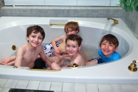 All weekend the boys were desperate to try out Nadine and David’s big jacuzzi tub…in fact, they even cleaned it first! They didn’t get to try it out until the final day of our visit.