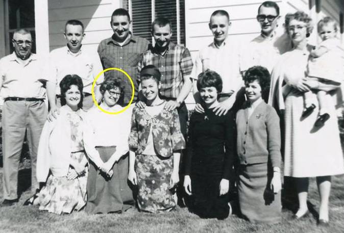 Front (l-r): Judy, Barbara (circled), Donna, JoAnn, and Mom