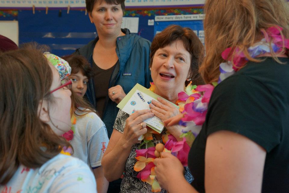 On the last day I sang with the kids (I’ve been going into Renay’s class the last two years to sing with the kids), we debuted a song I wrote for her retirement. (Part of why I volunteered in her classroom for two years in a row was selfish…I have always loved being around her and seeing her interactions with children.) I consulted other parents and her colleagues for ideas, and they sent me all sorts of wonderful anecdotes about their children’s relationships and memories of Renay. I used these treasures to write a song to the tune of “Waltzing Mathilda” (her favorite song). (One of the second-grade moms wrote the second verse after revealing a fondness for writing lyrics!) The kids practiced at home and I recruited the third graders to help, and we surprised her the Friday before the last day of school.