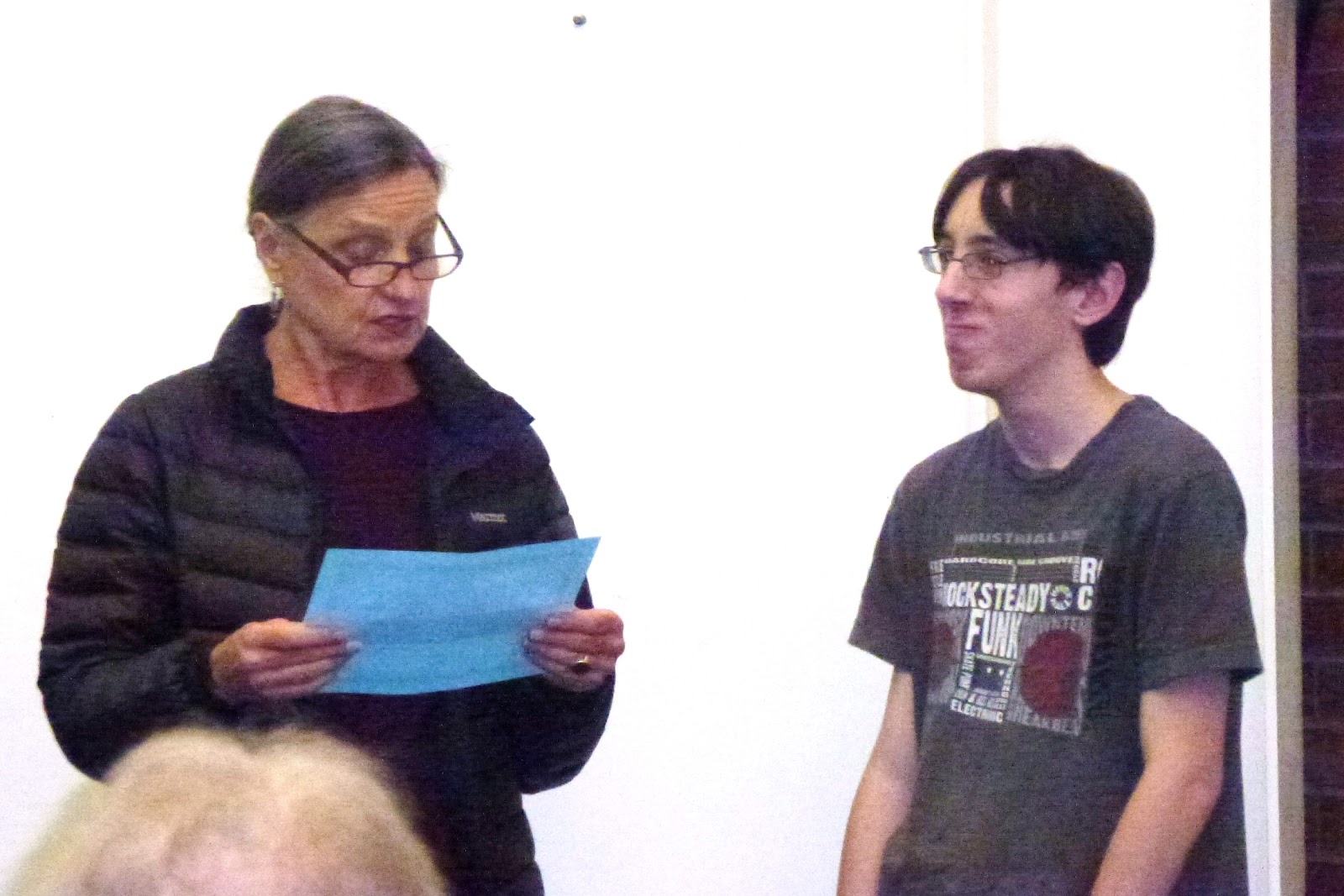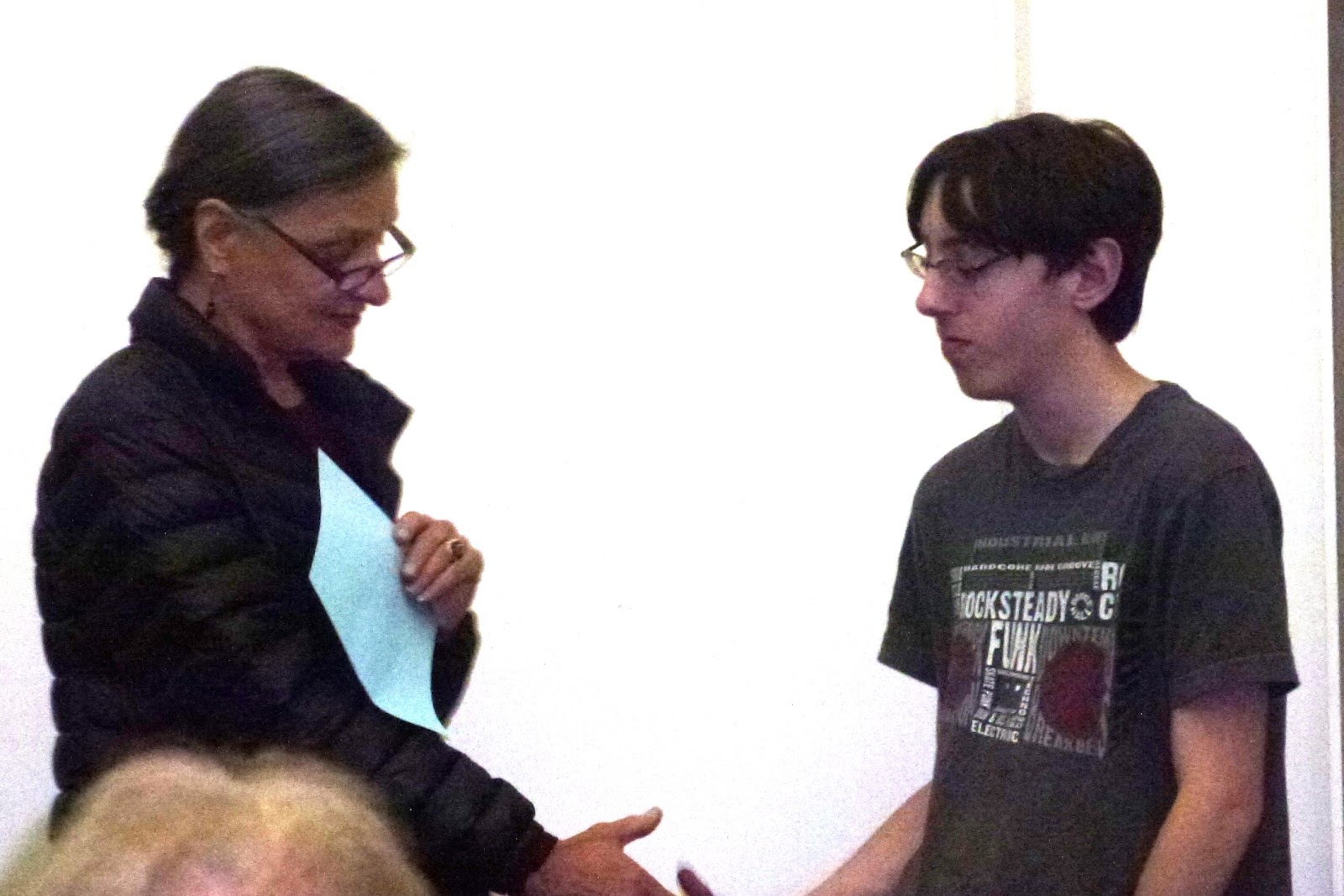 | Receiving his award (looking embarassed!) |