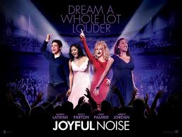 “Joyful Noise” is an extremely light comedy/musical about a small-town church choir that wants to compete on a national level. Parton (Gigi) plays the widow of the former choir director, and Latifah (Vi Rose) plays the new choir director. The trailers make it appear as if the two women are battling over control of the choir, and this is misleading in fact. They have very different styles, but they both want the same thing: for the choir to get to the national competition. In addition, Gigi’s grandson is in love with Vi Rose’s daughter.