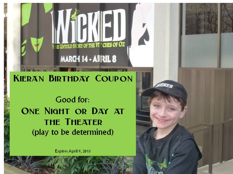 The show runs until October 21…the theater is small, so there are no bad seats. We were lucky to snag the two remaining seats together for opening night. Kieran’s desperate to see it again!