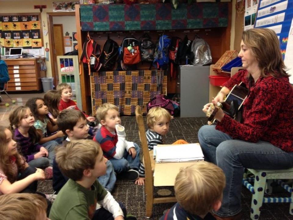 Friday morning she accompanied me to the elementary school to sing with the kindergarteners.