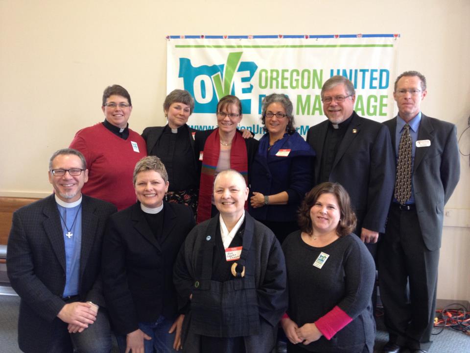 On Valentine’s Day Mike and I eschewed hearts and candy and instead attended an interfaith prayer breakfast to kick off the Oregon United for Marriage initiative to get gay marriage on the ballot. Our gifted pastor was one of the many clergy who spoke on that inspiring morning. She talked about Marion and how she bravely challenged her church. Today she said that Marion was one of the fiercest women she knew, who taught her how to own her own height and stand proud.