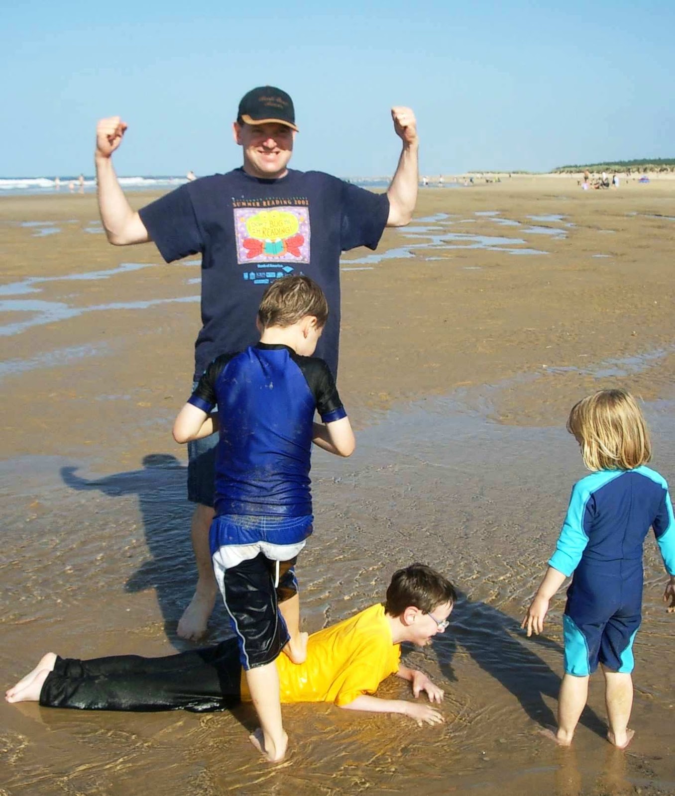 One memory I wish I could expunge from my mind was fear that I had injured Kieran irreparably with a concussion. One evening I was carrying him on my shoulders and unfortunately wearing some Clark’s slide-on sandals. Somehow I fell, and he went soaring down to the pavement. He cried and cried and cried, and I remember trying to keep him awake. We were very far away from medical facilities, so we were watching him carefully to see what would happen and if he needed medical care. At the same time, our nephew Alex seemed to be suffering from norovirus, and Mike’s brother and his wife had to rush him to a bigger city to get medical care. Those are not pleasant memories! Fortunately Kieran was fine. Clearly, he has a hard head!