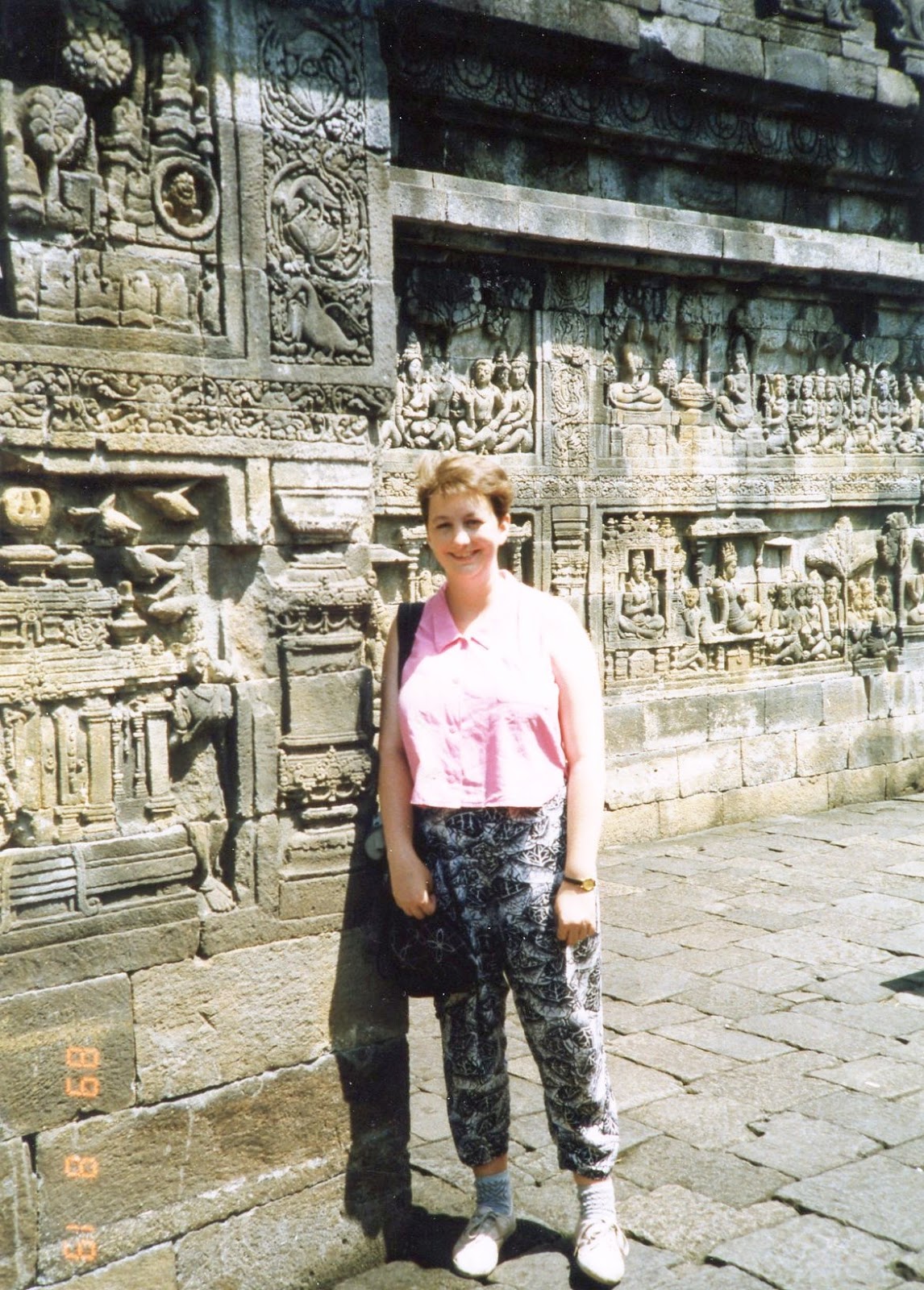 I will never forget visiting Borobudor, the largest Buddhist monument in the world–it was simply spectacular. It was probably built around 750 AD, but historians are not sure who built it or why it was built. In fact, for centuries it lay buried under layers of volcanic ash until it was rediscovered by Sir Thomas Stamford Raffles in 1814. When we visited, renovation had just been finished.