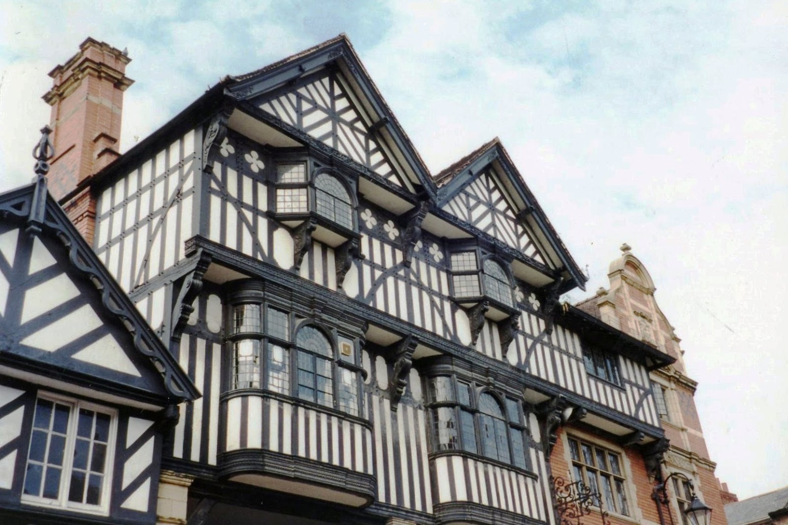 Chester is a beautiful city, close to Wales, that is known for its distinctive architecture. We visited a friend from Japan (Karyn) and her family there in the 1990s. Chester was one of the last towns in England to fall to the Normans. The town has a number of medieval buildings, but the famous black-and-white buildings in the city center are actually Victorian restorations. Chester is one of the best preserved walled cities in Britain–most of its ancient walls are almost completely intact.