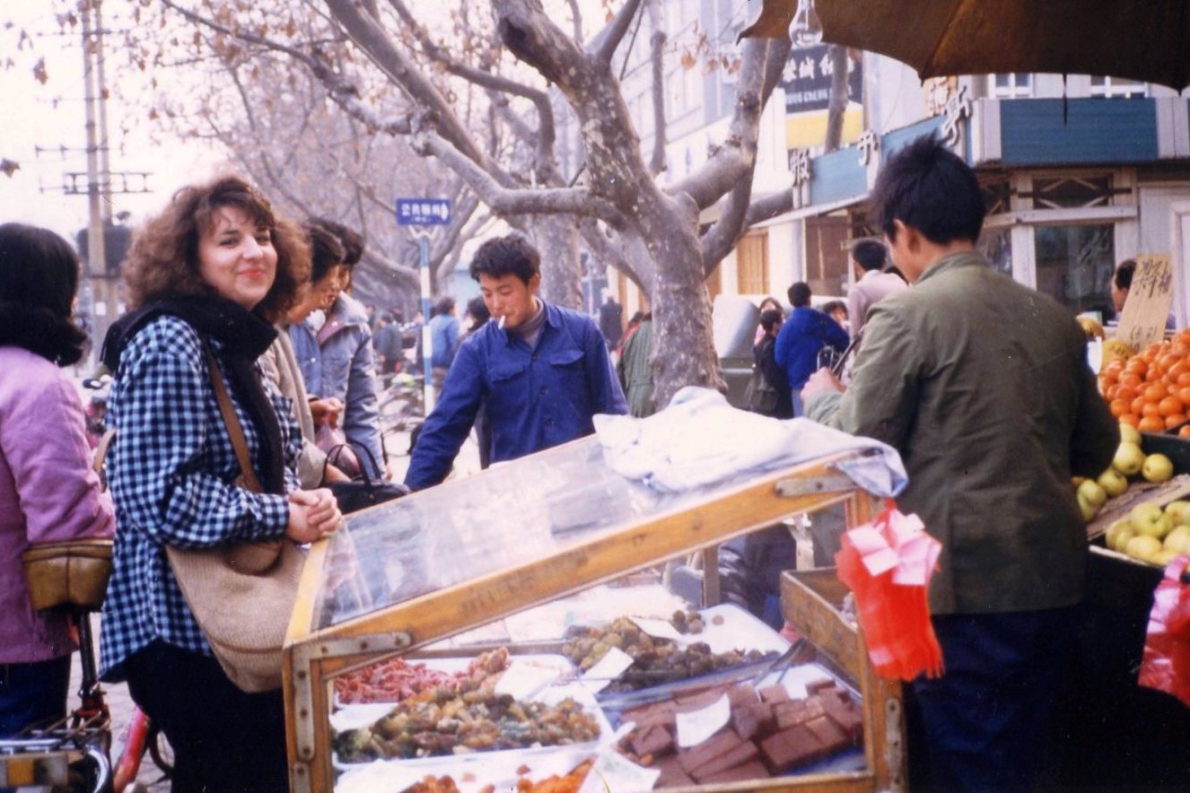 I remember riding a bicycle that had no brakes into the city–in the dark (and no helmet or lights, of course!), going to the disco in the Jin Jiang Hotel (at the time, the only fancy hotel there), being accosted by the money changers on every corner, making cinnamon rolls and pseudo-cream cheese out of yogurt so we could make cheesecake for Christmas, spending hours chatting and bonding with Nadine and her friends, eating duck and rabbit for the first time, singing in a church on Christmas Eve and…