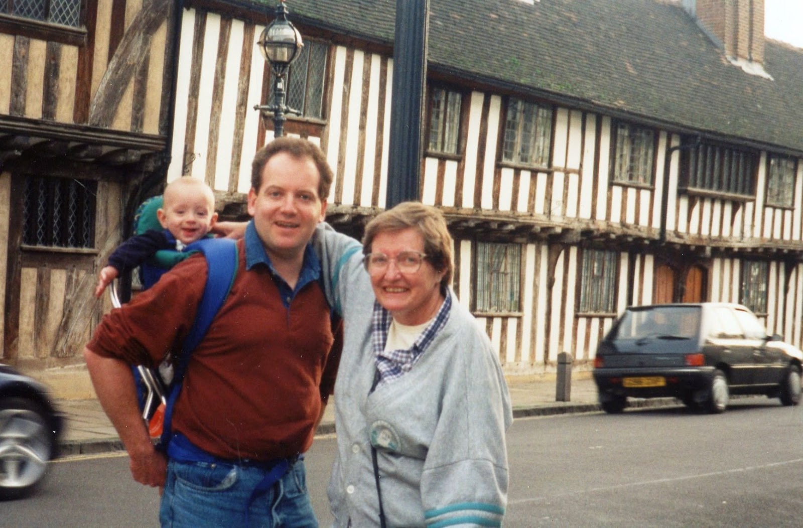 | Visiting my sister-in-law’s house in Cambridge in 2004 (Mike is in the baseball cap, with his mum, sister, and brother) |