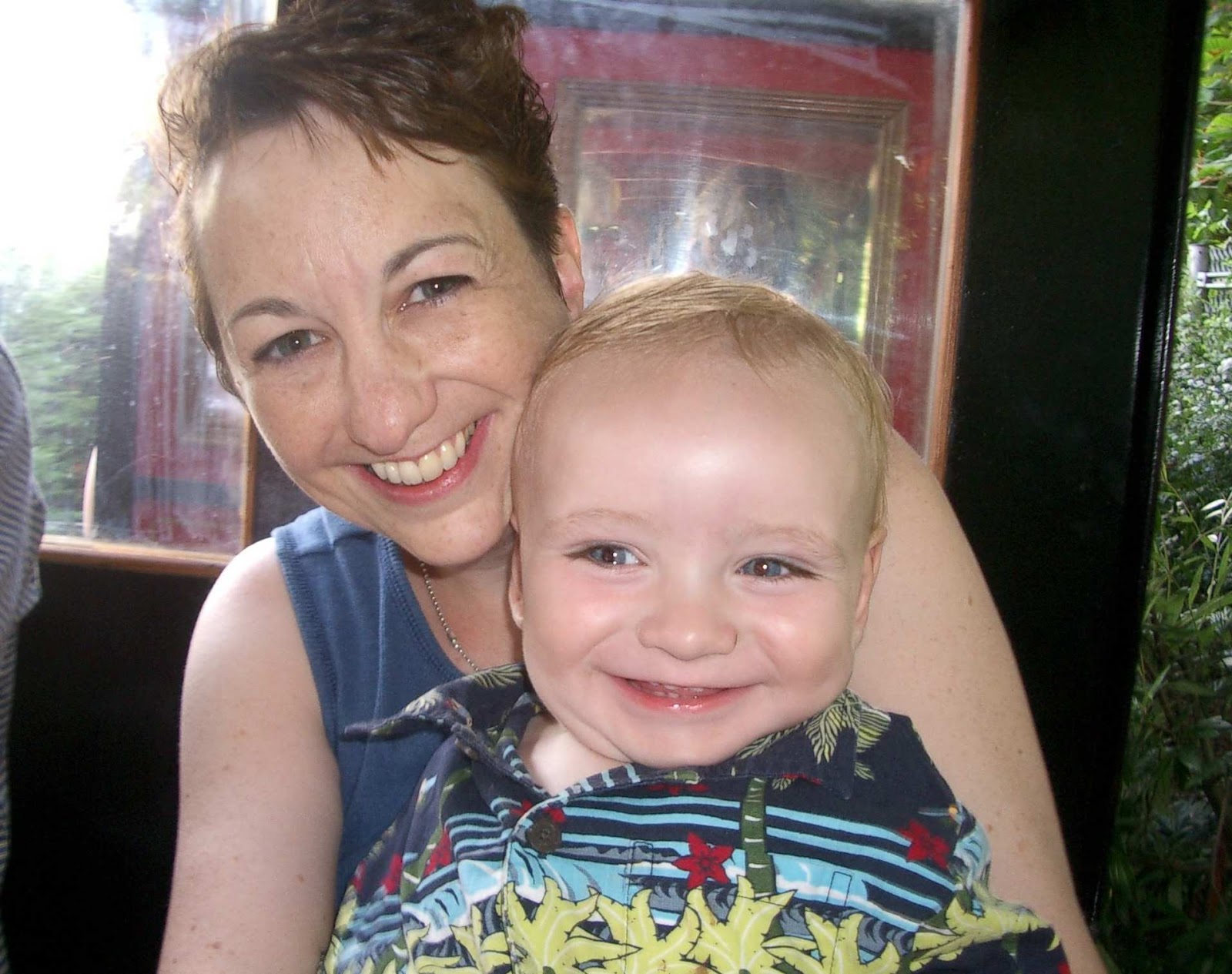 | One-year-old Kieran with his cousin Victoria, waiting for the train |