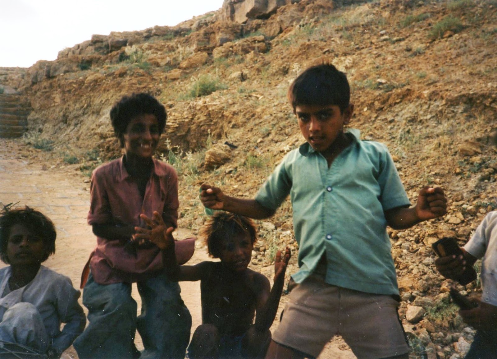 As we were climbing, a small band of boys followed us up the ridge. They turned out to be musicians, and before we knew it they surrounded us and burst into concert, banging drums and blocks of wood, and singing and dancing energetically. They were very friendly and claimed to be brothers. It was one of the most memorable encounters we had in India, far off the beaten path.