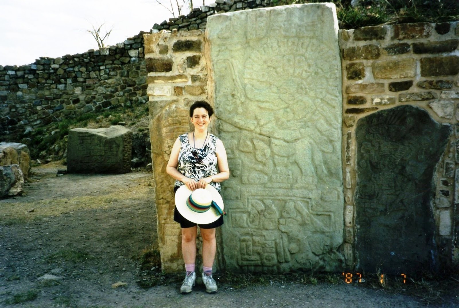 Mike and I took a wonderful trip to Oaxaca, Mexico, not too long before I got pregnant with Chris. We took a side trip (by local bus, which was an adventure) up into the mountains to Monte Alban, a large, ancient archeological site. It was beautiful and hot, and you can read about the site in great detail here…too much to explain in a short blog post.