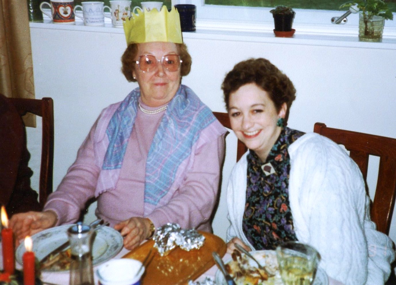 Christmas 1991, with Mike’s difficult and staunchly Catholic Aunty Betty, who didn’t like the American-feminist-Lutheran woman her nephew married until I produced a male heir! You can tell by my look that I tried very hard… |