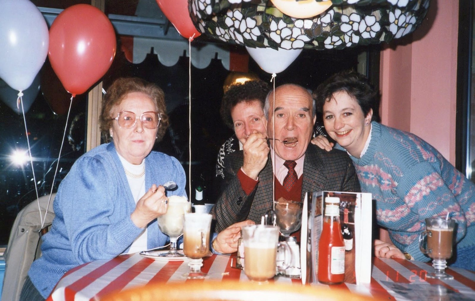 | Celebrating Mike’s dad’s birthday in TGIF in Reading, with his parents and Aunty Betty |