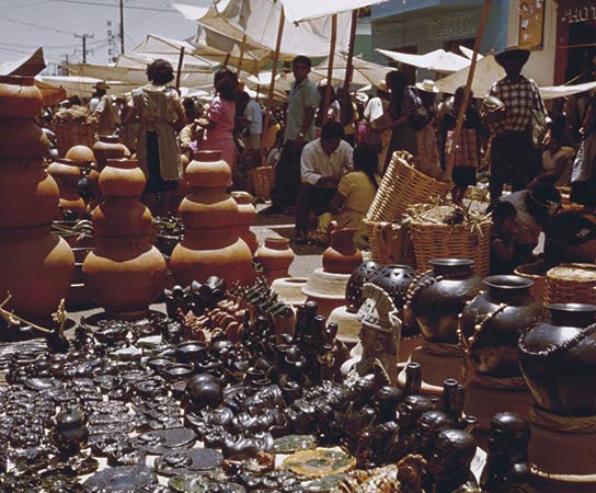 Monte Alban, a great archaeological site. Oaxaca is known as a city of artisans, and it’s especially famous for its painted wood sculptures and black pottery.