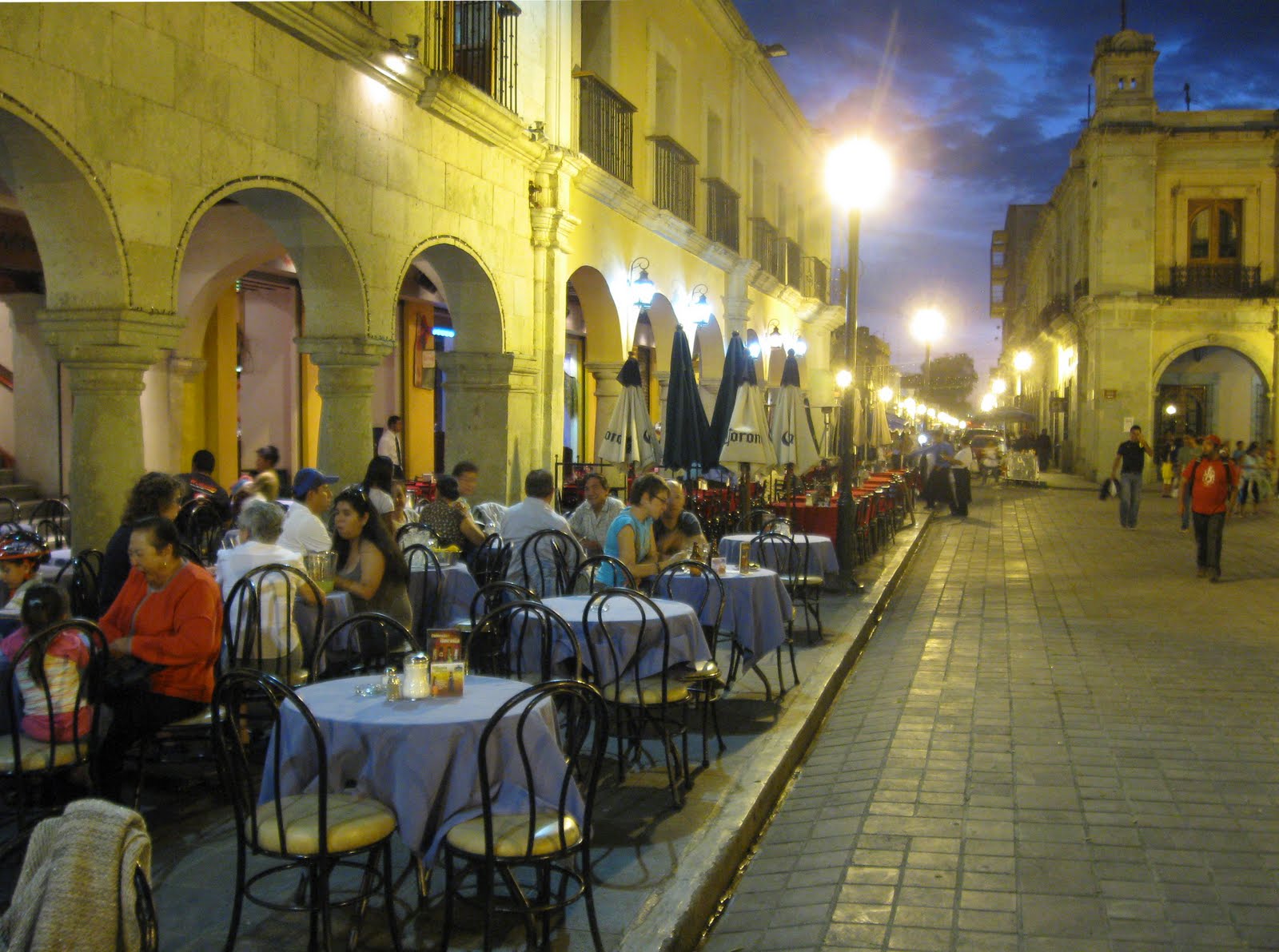 We loved Oaxaca…it was the perfect first trip to Mexico for us. We stayed in a simple Mexican hotel there, Hotel Las Rosas, which was only a block from the zocalo. The zocalo (city’s main square) was our favorite place to be–it had fantastic people watching, free musical entertainment, and great restaurants ringed around the square.