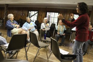 After the classes, you can find women all over camp practicing for the student concert after dinner on Saturday night.